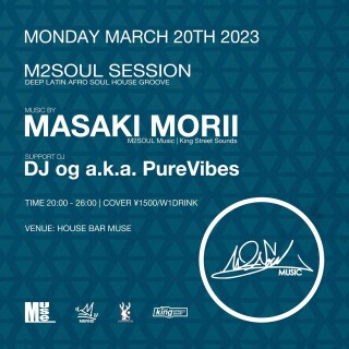 3月20日祝前日の月曜日は世界中のハウスDJも彼の曲をかけるヒットメイカーMasaki Morii M2SOUL SESSION