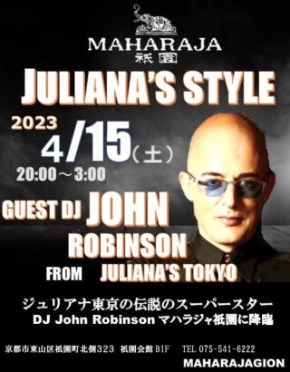 ジュリアナ東京の伝説スーパースターDJ John Robinsonがマハラジャ祇園に降臨!