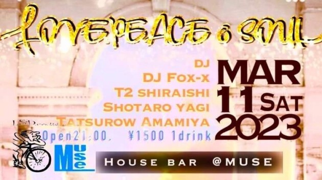 ハウスミュージックファンの間で話題のLOUVE&PEACE、3月の回はKONISHIさん不在ですがDJ Fox-x 、Shotaro Yagiの2人が参加。Tatsurow AmamiyaとT2shiraishiの大ベテランに挟まれてのプレイが気になる所。