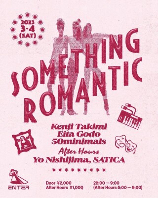 Enter初登場、DJ界におけるMaster of The Romanticとも評されているKenji Takimiを筆頭に、Eita Godo、50minimalsという個性の光るDJたちがRomanticという広義なワードをヒントに音楽を紡ぐ。