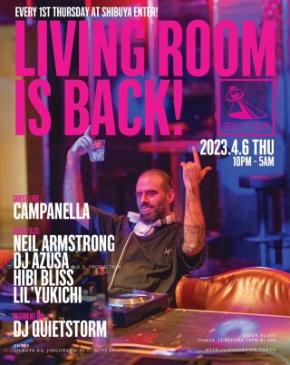 今回、場所を渋谷ENTERに移し、キャパシティ的にソファーに座って DJするスタイルはできないが、渋谷ENTERのブース位置(フロアー中央)でのプレイはLIVING ROOM™のコンセプトにマッチする内容となるであろう。