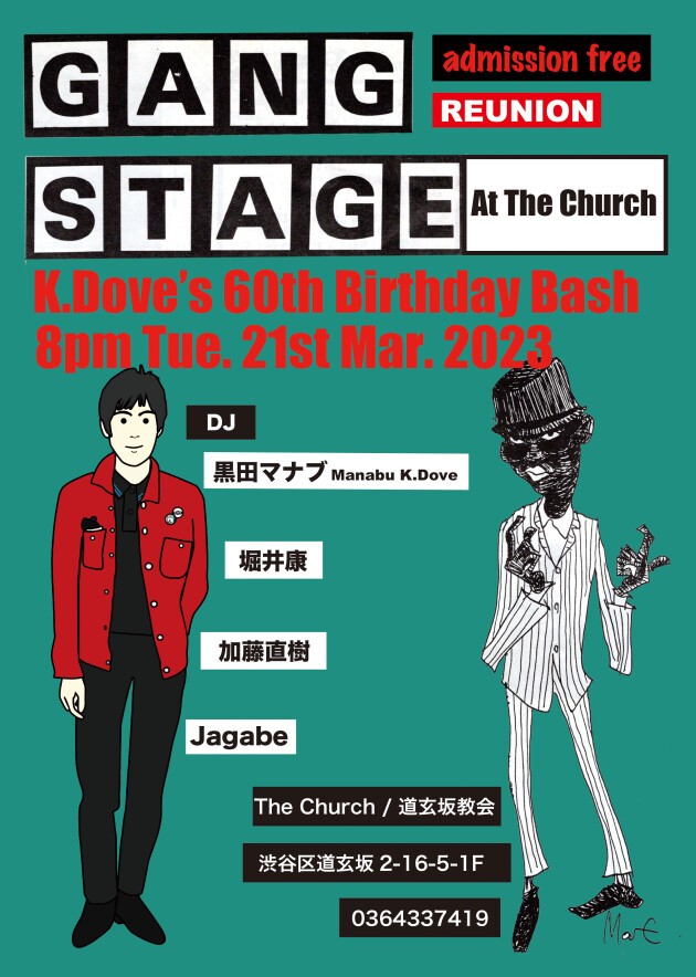 このGANG STAGEはツバキ・ハウスが閉まるまで毎月続けられ、その後Pピカソ、ミロス・ガレージ、Web、音と場所を移しながら、その時代の一番リアルなMODSを意識したクラブとして毎月オープンしていたがOrganBarで数回不定期開催した後休止。