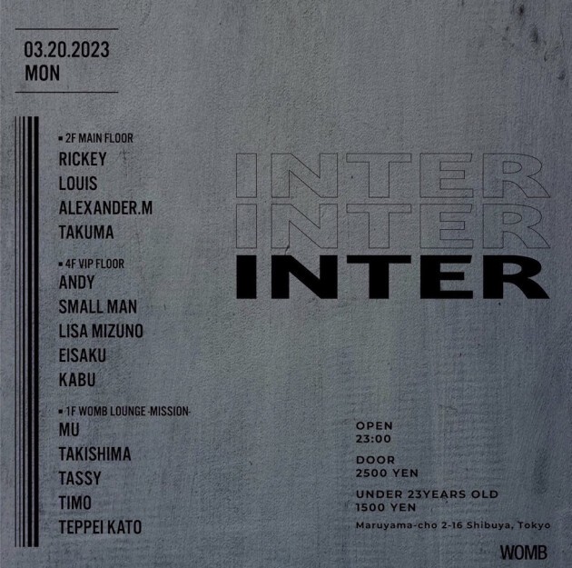11月初回に開催された INTER は平日に関わらず OPEN から LAST まで 熱量が途切れる事無く次世代 TECHNO を見せつける日となった。