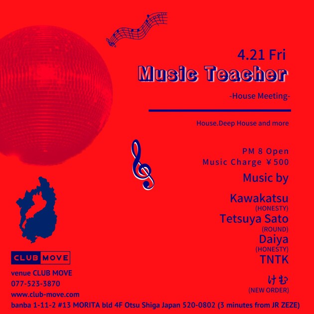 この日はMOVE界隈の様々なイベントからHOUSE & TECHNOのDJが集います。