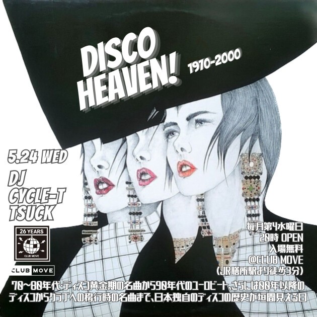 70~80年代・ディスコ黄金期の名曲から90年代のユーロビート、さらには00年以降のディスコからクラブへの移行時の名曲まで、日本独自のディスコの歴史が垣間見える日。