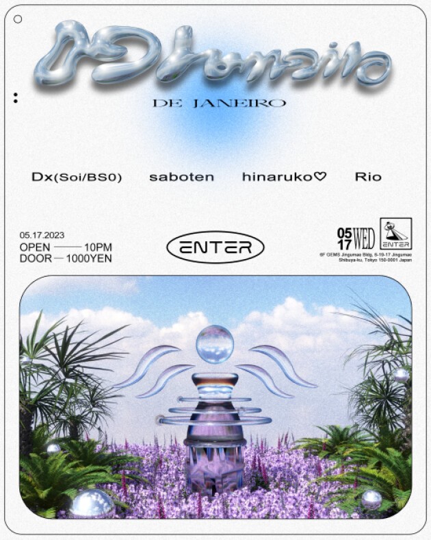 ベースラインを数珠つなぎで自由自在に操り、フロアから二度と抜け出せない “ベース蟻地獄” に陥れるドープなミックスを武器とするDx、レゲエ、ベース、ハウス等幅広いプレイのsaboten、都内の数々のクラブで活躍を魅せるhinaruko♡やRioが登場。