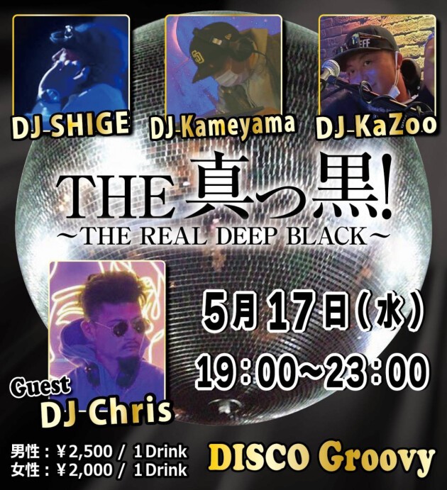 2022年に横浜馬車道DISCO Groovy で10年以上続く第1、第2、第3水曜日のTHE 真っ黒で復帰を果たす。