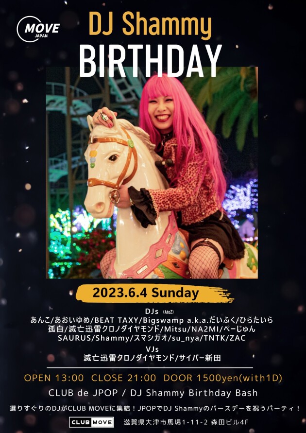 選りすぐりのDJがCLUB MOVEに集結!JPOPでDJ Shammyのバースデーを祝うパーティ!