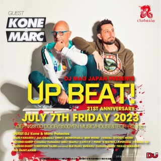日本のHOUSE MUSICシーンの登竜門”UP BEAT!”が21周年を迎える。去年大盛況のメモリアルを終えてからの快進撃が止まらない、今回はスペインからDJ Kone & Marc PalaciosがGUESTとして登場!!!