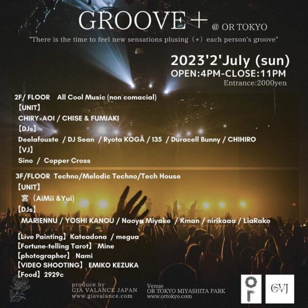 "個々のグルーヴを+(プラス)していく中で、新たな感覚に触れる時間"をコンセプトに音と音との感覚、様々な感覚を変化させる事で、心が弾み、感情が踊る、新たな感覚を追求。