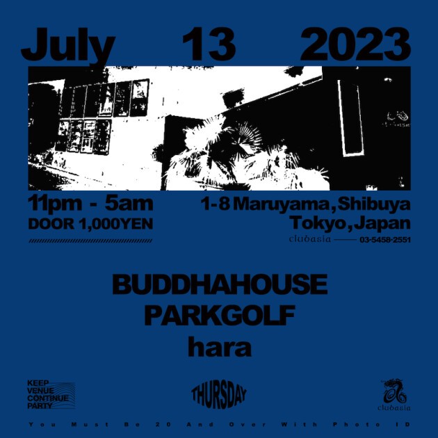 "club asia THURSDAY" Continuing from last month, the 2nd Thursday of the month will be held at midnight with 3 familiar members from clubasia!! PARKGOLF will be performing again!!
