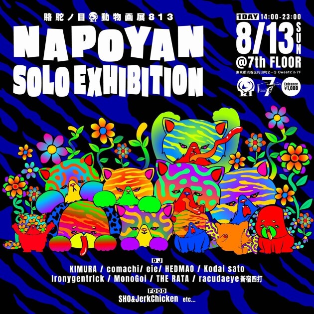 【駱駝ノ目 動物画展813】*7th FLOOR 渋谷 《"NAPOYAN" Solo Exhibition》*@7thfloornanakai 2023 8/13 (sun) 14:00〜23:00 Entrance ¥1,000-