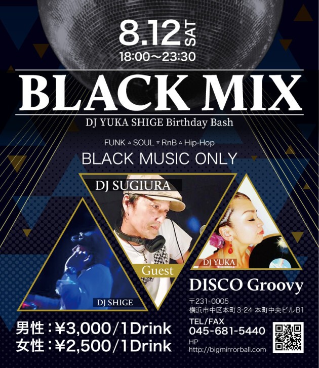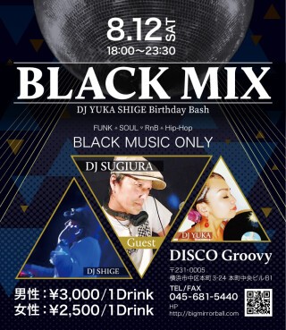 毎月第2土曜日は【DJ SHIGE&DJ YUKA】による黒音オンリーの夜に静岡よりDJ SUGIURAをゲストに迎えさらに黒くお届けします。