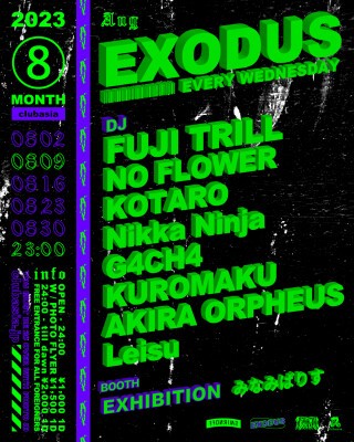 FUJI TRILLをはじめ多方面に活躍するDJ,BeatMakerが毎週水曜渋谷の夜をにぎわす通称" #エクソ "。LIVE TATTOO、PAINT、NAIL ART、EXHIBITIONも隔週でcheck。外国からのお客様は入場フリー!!是非お越しください!!