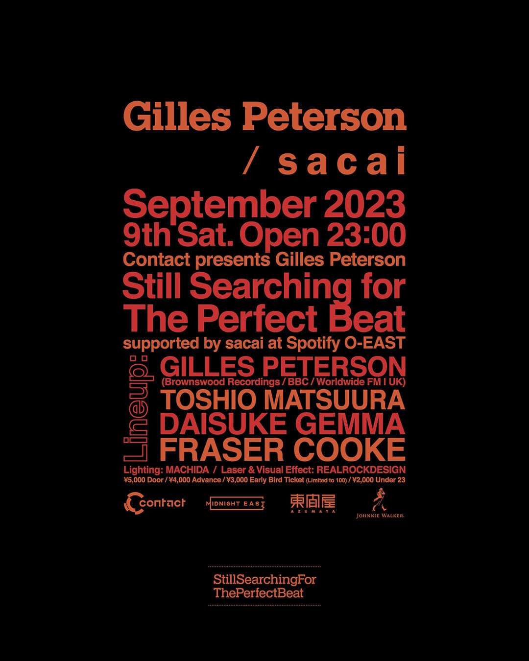 他に長年の盟友松浦俊夫、ファッション界を中心に活躍するDAISUKE G.、Fraser Cookeといった日英の音楽愛好家が参加する。なお、本イベントにはファッションブランドsacaiのサポートが決定している。