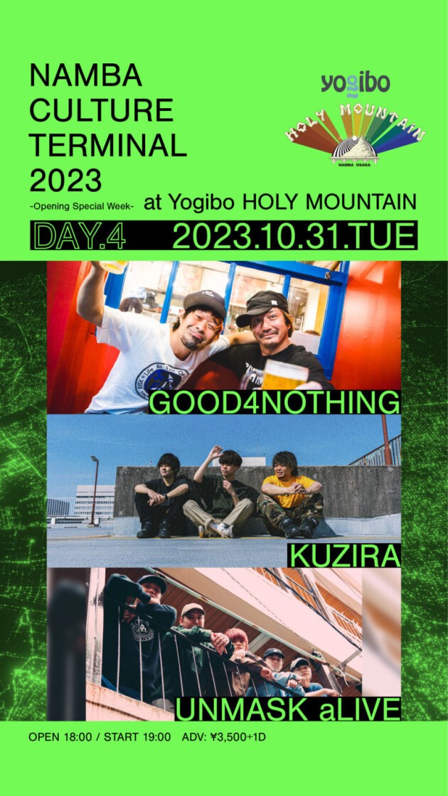 大阪・なんばにオープンする新たなライブハウス、「Yogibo HOLY MOUNTAIN」のこけら落とし公演「Namba Culture Terminal 2023 -Opening Special Week-」が10月28日から11月3日にかけて開催決定!