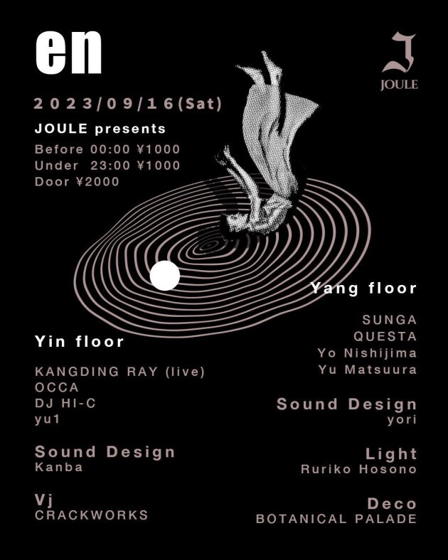2023.9.16(SAT) OPEN 23:00 DOOR ¥4,000- ADV ¥3,000- チケット http://ptix.at/gSkp7P at club JOULE Yin floor KANGDING RAY OCCA DJ HI-C yu1