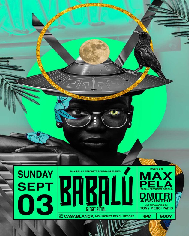 日本のみならず世界のアフロ・ハウス・ミュージック・シーンの重鎮として知られるMAX PELAのアフロ・ルーツ・リズムへの傾倒は明らかだ。DJとしての役割にとどまらず、BABALÚのイベントのキュレーション、ラジオポッドキャストの司会、尊敬するプロダクション会社AFROBETA BODEGAを通したライブイベントの企画などを行っている。世界中の聴衆を魅了するサウンドを持つ彼をホストできることを光栄に思う。