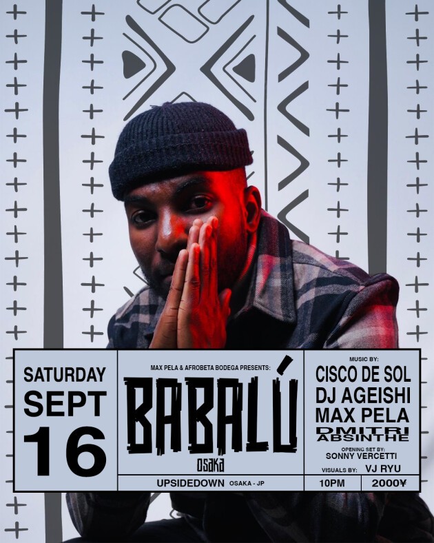 また、日本のみならず世界のアフロ・ハウス・ミュージック・シーンの重鎮として知られるMAX PELAのアフロ・ルーツ・リズムへのコミットメントは明白である。DJとしての役割にとどまらず、BABALÚのイベントのキュレーション、ラジオポッドキャストの司会、尊敬するプロダクション会社AFROBETA BODEGAを通したライブイベントの企画なども行っている。世界中の聴衆を魅了するサウンドを持つ彼をホストできることを光栄に思う。MAX PELAと並んで、DMITRI ABSINTHEを迎えます。DMITRI ABSINTHEは、日本に上陸して以来、日本のナイトライフの要として活躍してきました。ドミトリーはジャズからテクノまで幅広い音楽性を持つ。彼のDJ人生は20年前にテルアビブで始まり、その後日本に移り住み、その比類なきスキルで観衆を魅了した。
