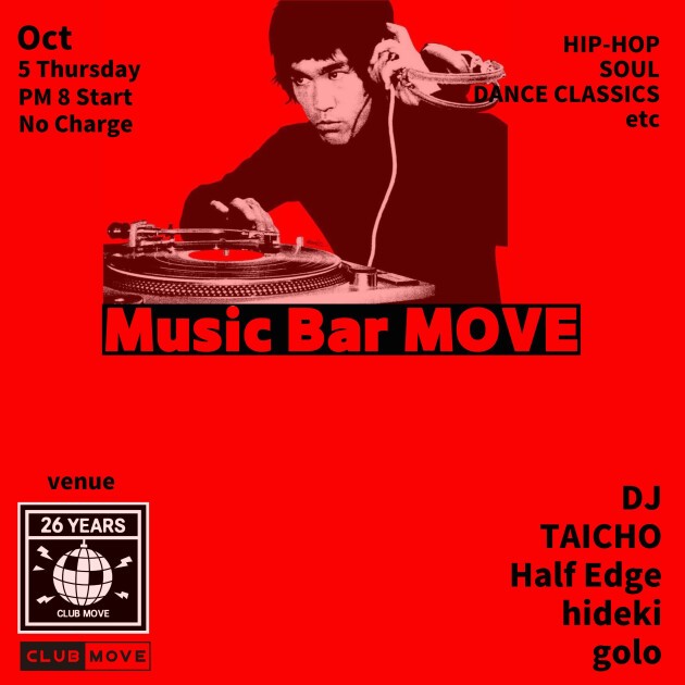 DJ BAR営業のこの日はMOVE界隈の様々なメンバーがプレイします。