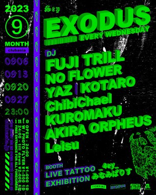 FUJI TRILLをはじめ多方面に活躍するDJ,BeatMakerが毎週水曜渋谷の夜をにぎわす通称"エクソ"。LIVE TATTOO、PAINT 、EXHIBITIONも隔週でcheck。外国からのお客様は入場フリー!!是非お越しください!!