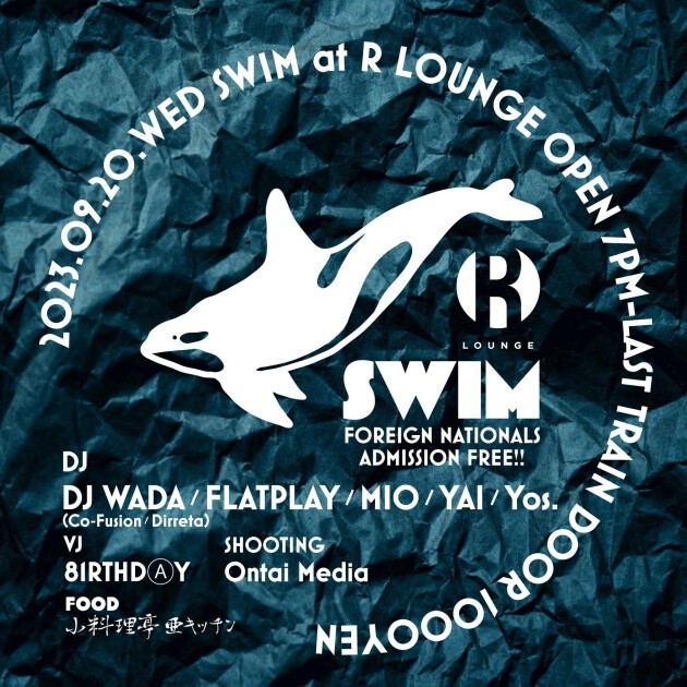 毎月第1第・3水曜日 R LOUNGEにて開催されるWeekday Dance Music Party 『SWIM』