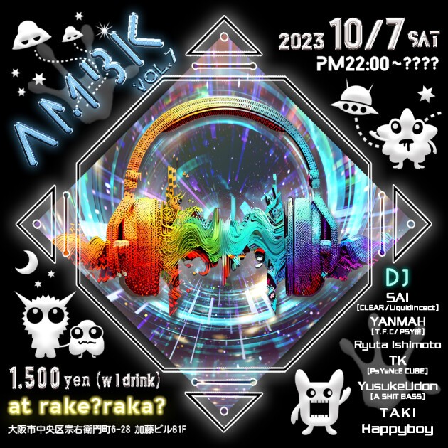 A monthly Techno and Psytrance party takes place on Saturday, October 7th, in the heart of the downtown area at Rakelaka. This time, we are excited to announce that we have special guests SAI from Clear and the incredibly cool YANMAH performing! Please join us on this occasion, we look forward to seeing you there.