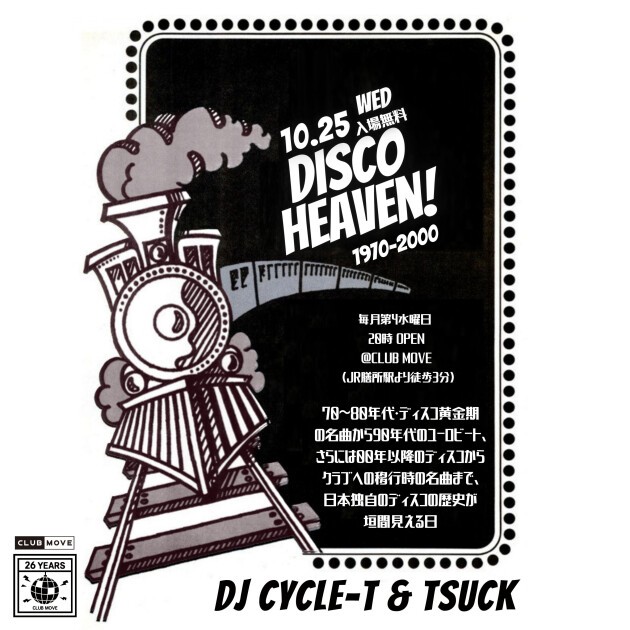 70~80年代・ディスコ黄金期の名曲から90年代のユーロビート、さらには00年以降のディスコからクラブへの移行時の名曲まで、日本独自のディスコの歴史が垣間見える日。