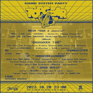 となっており、DJにはあらゆる現場で重低音を操る実績を持つマスター勢の参加にとどまらず、現在の東京アンダーグラウンドシーンに欠かせない強力な面々がジャンルや界隈を超え一同に集結!