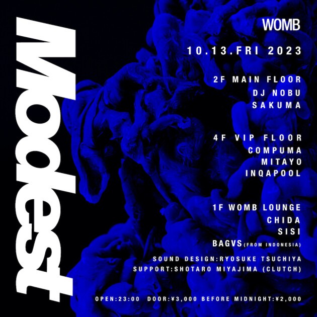 東京や地元である新潟を中心に活動する DJ、Sakuma によるパーティー Modest が WOMB で開催。