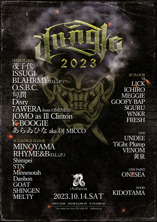 茂千代、ISSUGI、BLAHRMY、その他様々な本物たちによるタフでDOPEな灼熱狂乱パーティーを朝まで尽きる事のない乾杯とご一緒にお楽しみ下さい。