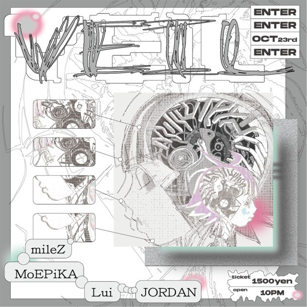 イラストレーター兼デザイナーでもあるMILEZが渋谷noteで開催していたVEILをENTERにて再始動。UNDERRATED、アンダーシステムを主催するLui、ヴィンテージショップfaith tokyoのディレクターであり、様々な新進気鋭のアーティストのパーティにDJとしても出演しているMoEPiKA、どの場所でもピタリとはめる幅広い対応力と選曲で、中野SmithでSeismic Charge、新宿Bridge第1、3土曜日のレジデントを務めるJORDANが共演する。