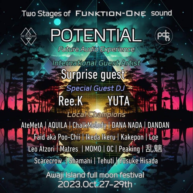 淡路島の抜群のロケーションにて3日間2ステージFunktion-Oneシステムで開催する、音楽ノンストップオールナイトの贅沢なフルムーン月食フェスティバル。 自分の可能性を解き放ち、自己に秘めたポテンシャルを探求する準備はできていますか?