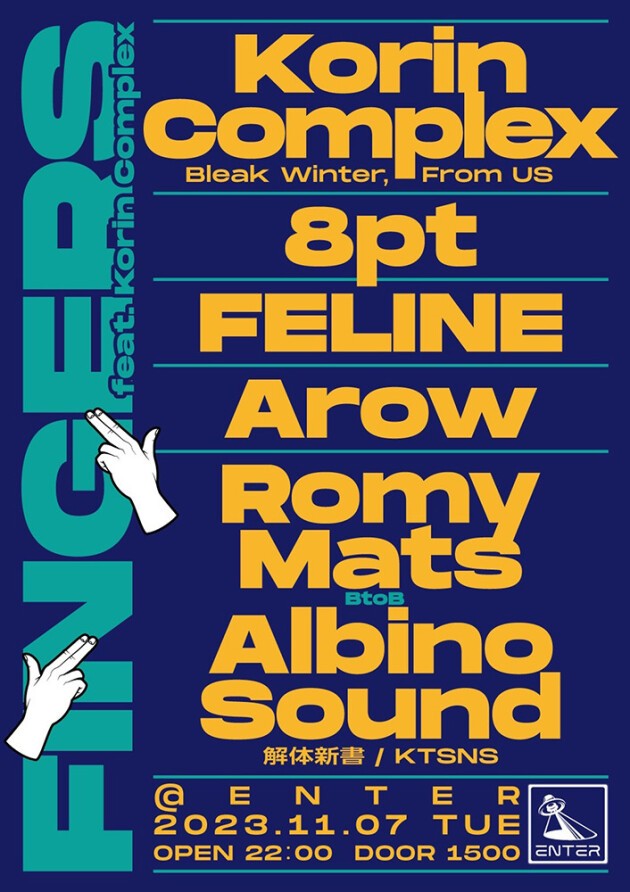 Bleak Winter Records よりKorin Complexを招聘。解体新書よりRomy MatsとAlbino SoundsがB2Bで出演し、FELINE、Arow、8ptと、ローカルシーンで活躍するDJが共演する。