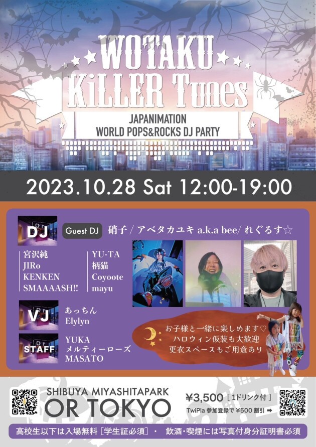 2009年より全国各地、フランス、ドイツ、イギリスで定期開催していたA-POP&J-POPイベント「WOTAKU WORLD WAVE(ヲタウェブ)」のプロジェクト終了後、2014年よりヲタウェブレギュラーDJと宮沢純が「TOKYO」を盛り上げるべく新たに立ち上げた「WOTAKU KiLLER Tunes(ヲタキラ)」は、ライフスタイルが変化した層にもアプローチすべく「Family fun Club Style」を掲げ、乳幼児からキッズまで親子で来場可能なパーティーを提案。クラブ世代がファミリーでも楽しめるアットホームな雰囲気は唯一無二。