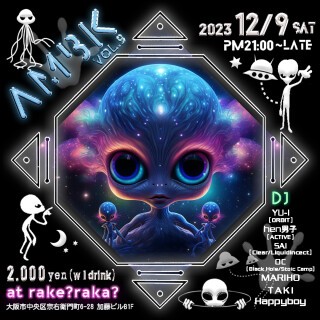 Monthly event, organized by AMBK with Happy boy as the host. We are an underground techno club with a unique tropical bar and psychedelic looks. Renowned DJs from Japan will be spinning. Enjoy free sushi and takoyaki in the evening. Please feel free to drop by.