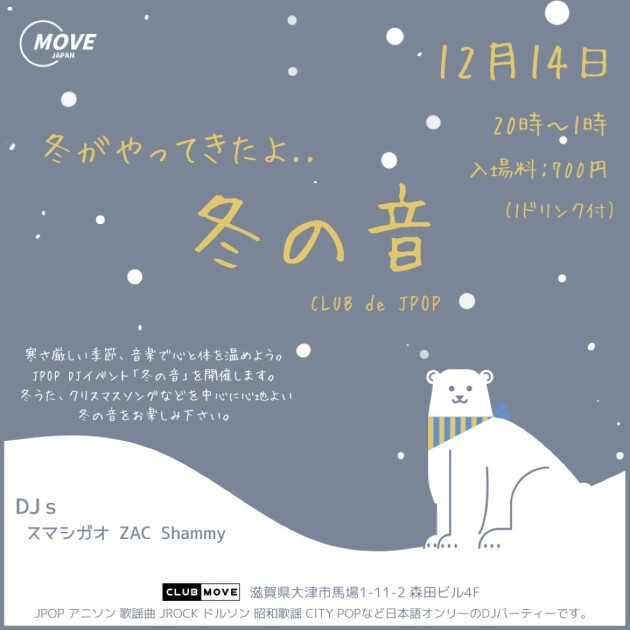 寒さ厳しい季節、音楽で心と体を温めよう。J-POP DJイベント「冬の音」を開催します。