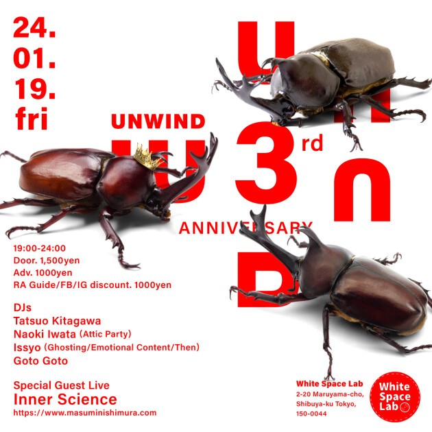 渋谷のアンダーグラウンドVenue @White Space Labでのディープハウスパーティ ”UNWIND” 心地良いディープハウスを軸にOrganic house / Downtempo, deep tech, electronica, ambientなどクロスオーバーにバレアリック、レフトフィールドスタイルとして新しさと実験的且つモダンなサウンドを心地良く体感できるディープハウスパーティ”UNWIND” 今回で3周年を迎えます!