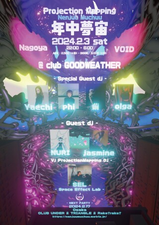 名古屋から、スペシャルゲストDJ olga、Yaechi 、phi 、繭4名を迎え。
