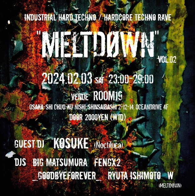 The event is Hard techno / Hardcore techno event based on industrial sound, in Osaka.