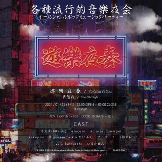 大阪・Triangleで不定期開催されている洋・邦ポップスを中心としたシティポップやディスコ、ロックなどの【踊れる】ポップミュージックパーティーの第6回目が選りすぐりのDJ・VJにより初の深夜開催!