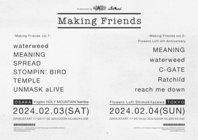 waterweed/MEANING/SPREAD/STOMPIN’ BIRD/TEMPLE/UNMASK aLIVE