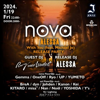 2024.1.19.Fri 『THOMAS GOLD』『KAAZE』を招聘してきた『nova』がALESSAの新曲「Wav3motion & GMAXX & ALESSA.A / With You (feat. Michael Jo)」リリースパーティーとして開催!