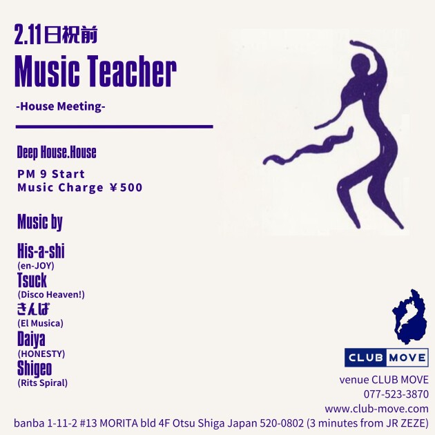 MUSIC by His-a-shi (en-JOY) / Tsuck (Disco Heaven!) / きんぱ (El Musica) / Daiya (HONESTY) / Shigeo (Rits Spiral)