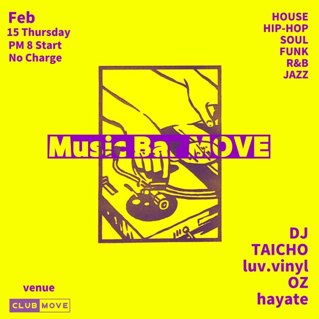 DJ BAR営業のこの日はMOVE界隈の様々なメンバーがプレイします。
