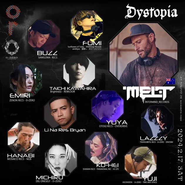 MELT from Australia (Intermind records) / BUG (ADMC) / BUZZ (Sangoma records) / EMIRI (Zenon records) / Taichi Kawahira (Brightness) / Lina les Bryan / YUYA (Otogi records / OVERDRIVE)