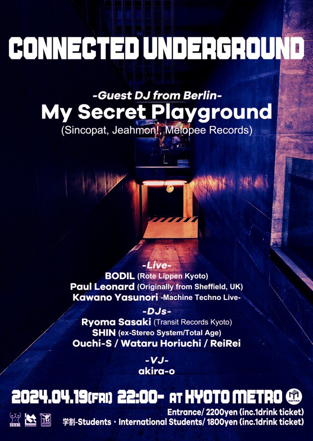 そして、電気グルーヴのオープニングアクト等、精力的にクラブ・ライブハウスで活動を続け、アルバム「KÖRPERKOMPLEX」も好調なライブアクト 『BODIL』、Tresor.Berlin、Renate、Ipse、Golden Gate 等々、ベルリンのテクノ・ハウスのトップ・クラブに出演、2007年よりコンスタントに楽曲をリリースする 『Ryoma Sasaki』、京都をベースに長年にわたり活動し、Juan Atkins、Santiago Salazar、DJ3000 等のデトロイト勢のアーティストの招聘するなどシーンを堅実に牽引してきたDJである『SHIN』をはじめとしたレギュラー陣が出演します。