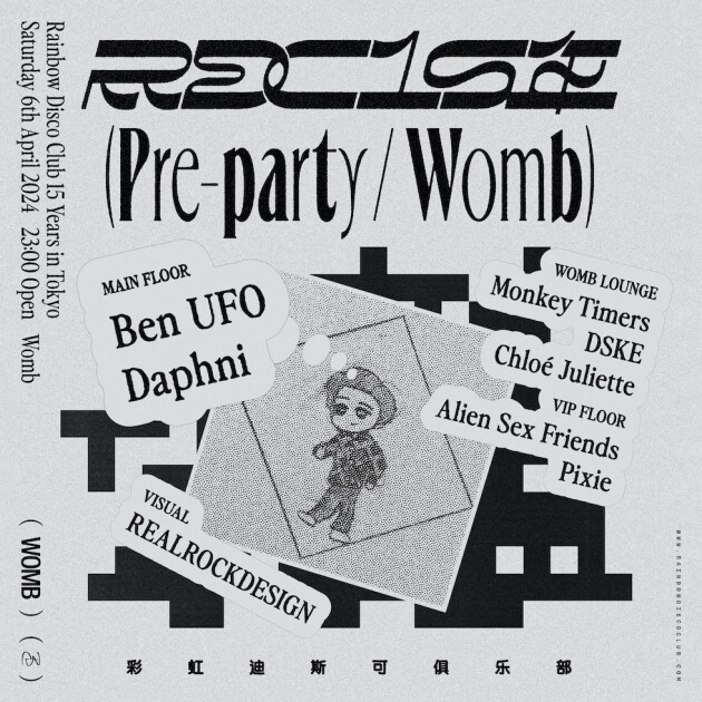 演出は RD Cを初期から支えてくれた REALROCKDESIGN が担当し、WOMB LOUNGE と VIP FLOOR には国内屈指の実力派 Monkey Timers、DSKE、Chloé Juliette、Alien Sex Friends、Pixie が集結します。前売券の購入をお忘れなく。