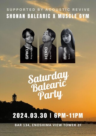 2024年3月30日(土)夜、江の島正面にある江の島ビュータワー2階、BAR134.ENOSHIMAにて「 湘南バレアリック presents 春の海の音楽会 “Saturday Balearic Party”」が開催されます。