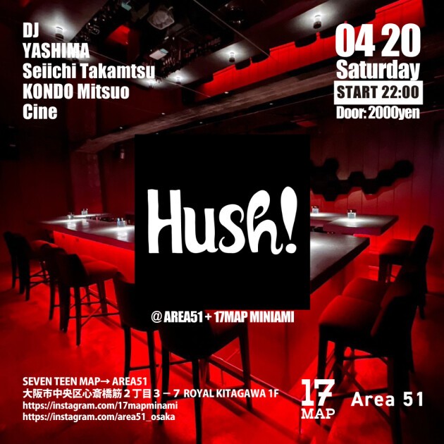 2011年にスタートし、John Digweed、Nick Curlyなどを招聘してきたTrue House party Hush!がミナミのAREA51でリスタート!